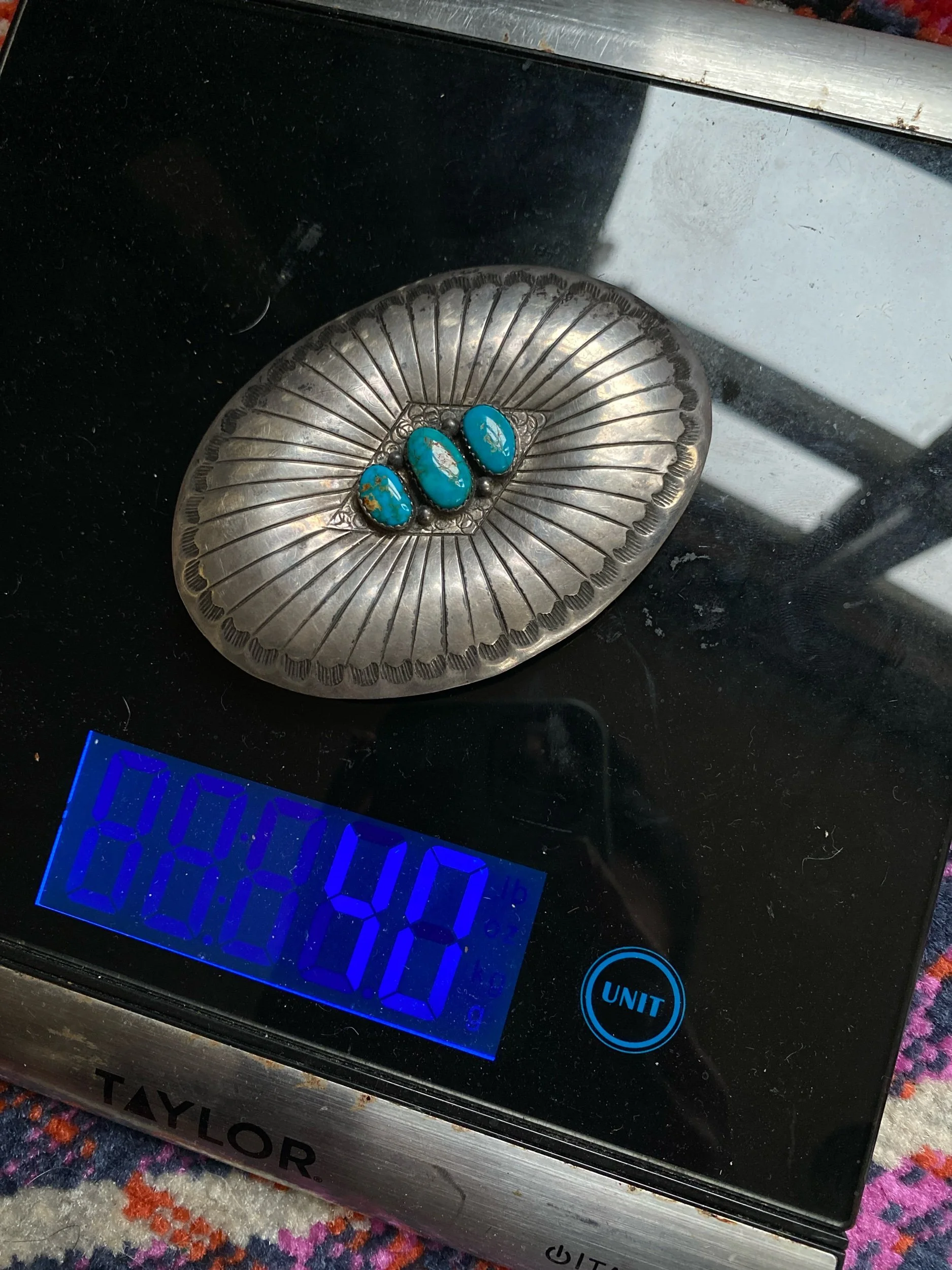 TUCK&WOLF › Stunning vintage sterling silver and turquoise belt buckle Image 1 of 7 Image 2 of 7 Image 3 of 7 Image 4 of 7 Image 5 of 7 Image 6 of 7 Image 7 of 7 Stunning vintage sterling silver and turquoise belt buckle Sale Price: $375.00 Original Price: $399.00 Add To Cart Added!