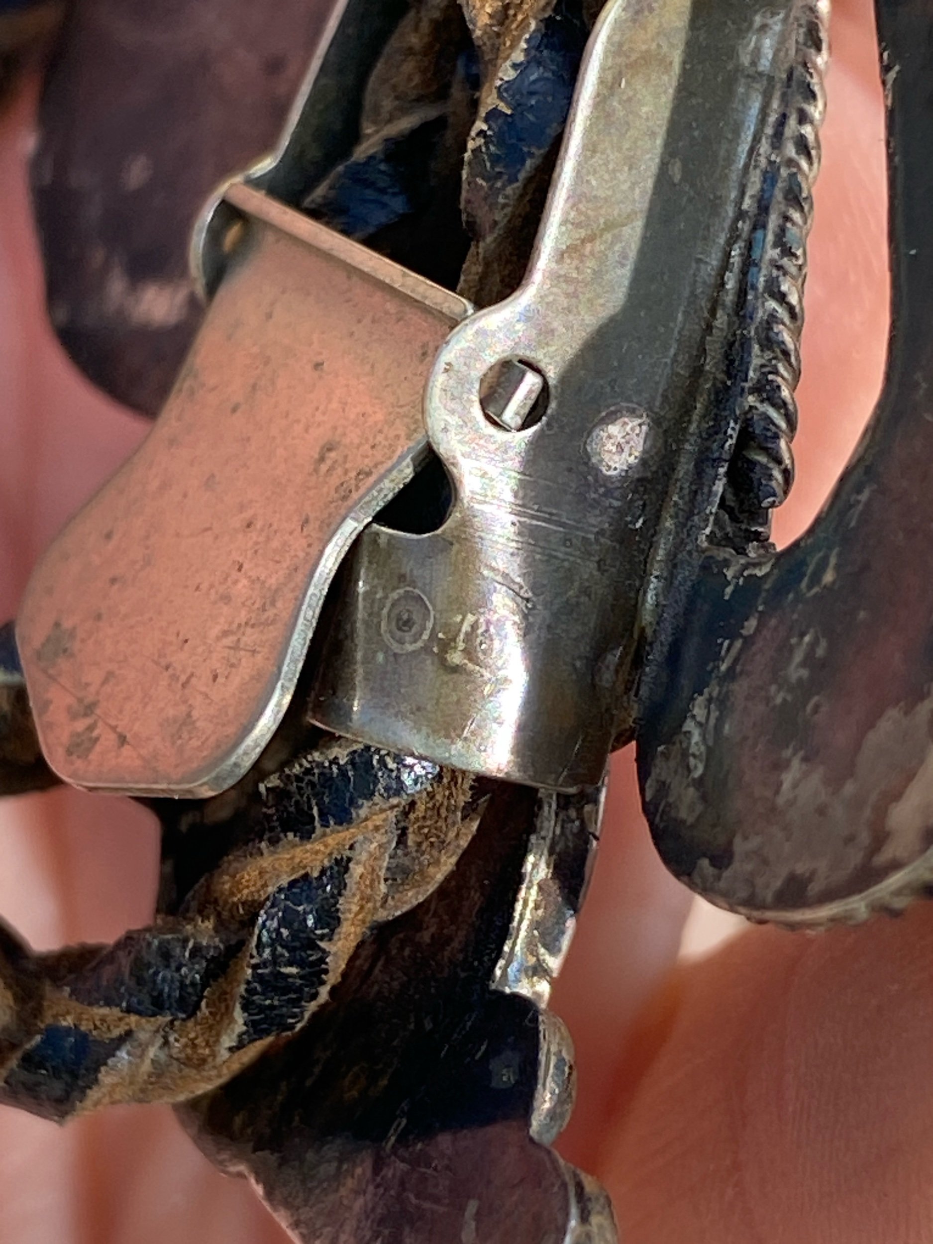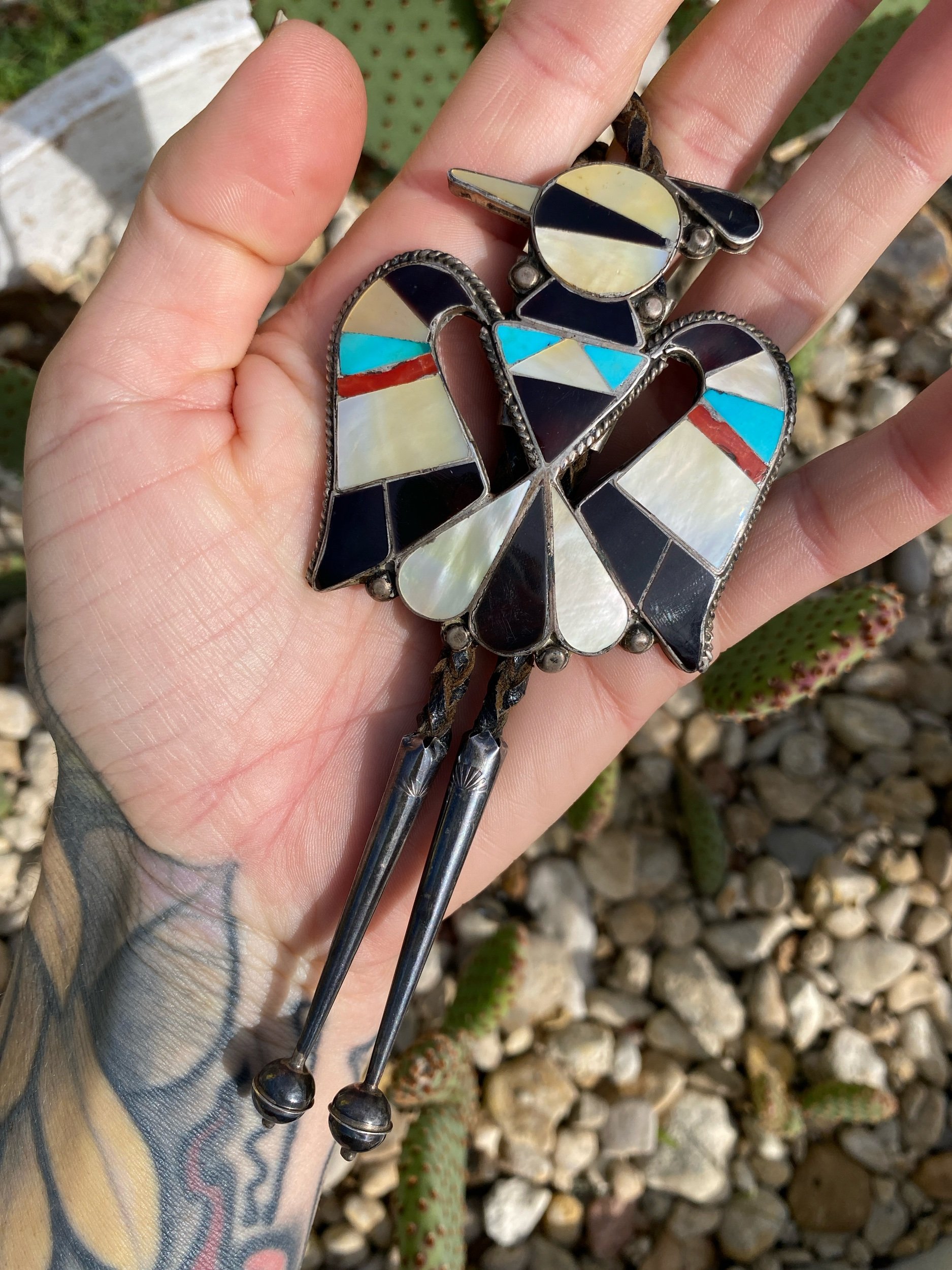 TUCK&WOLF › Huge vintage Zuni Thunderbird Bolo Tie • hallmarked • sterling silver Image 1 of 9 Image 2 of 9 Image 3 of 9 Image 4 of 9 Image 5 of 9 Image 6 of 9 Image 7 of 9 Image 8 of 9 Image 9 of 9 Huge vintage Zuni Thunderbird Bolo Tie • hallmarked • sterling silver $375.00 • sterling tested• hallmarked on slide ‘OL’ (?) Add To Cart Added! • sterling tested• hallmarked on slide ‘OL’ (?)